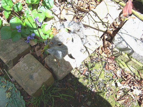 You can see he has no fear of me, LOL, he's smelling a wild violet,