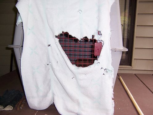 eating. A couple of holes in the crates door are a little larger