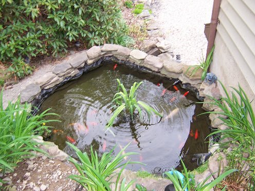 Houdini in hand to the side of the yard without the pond LOL.